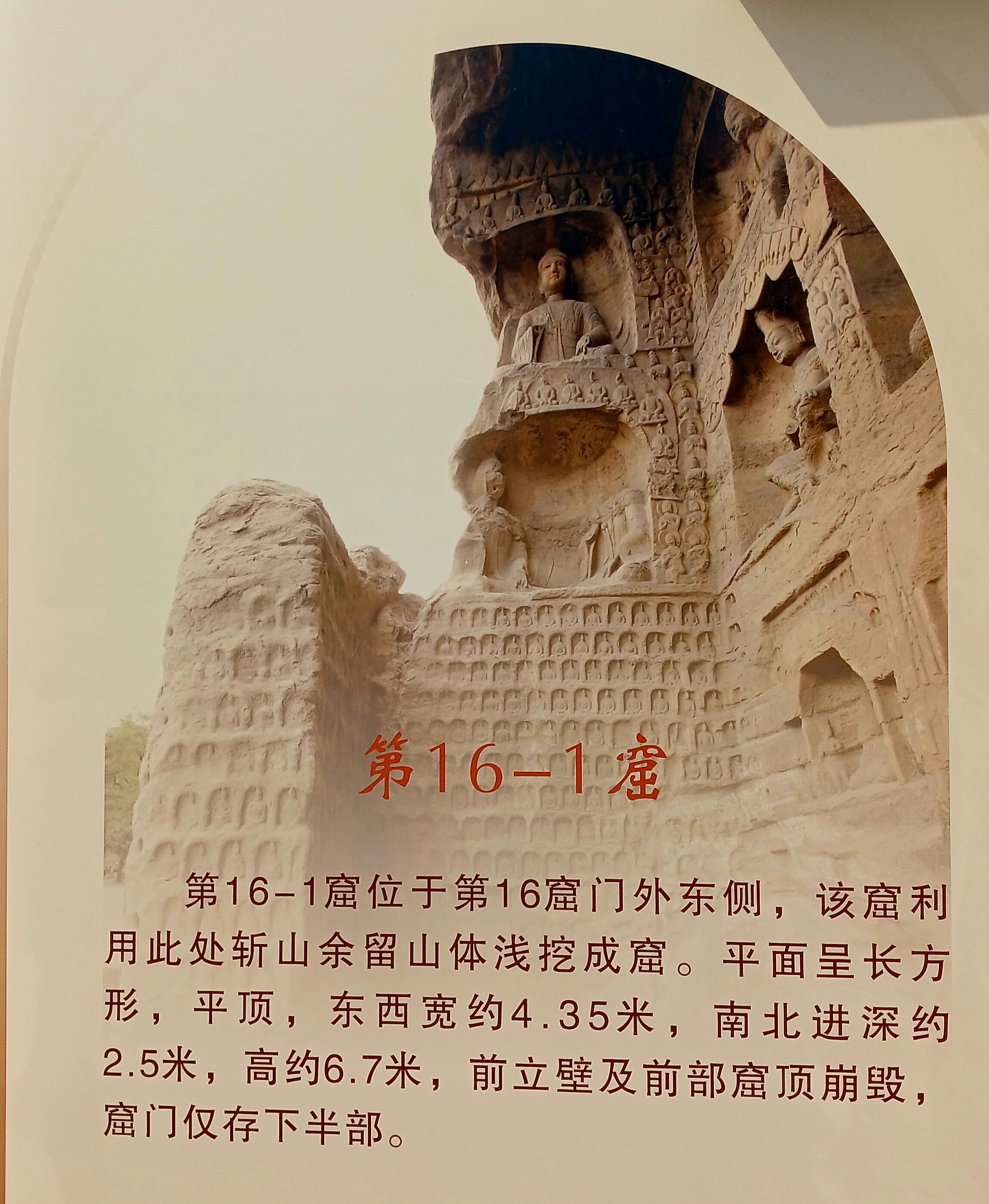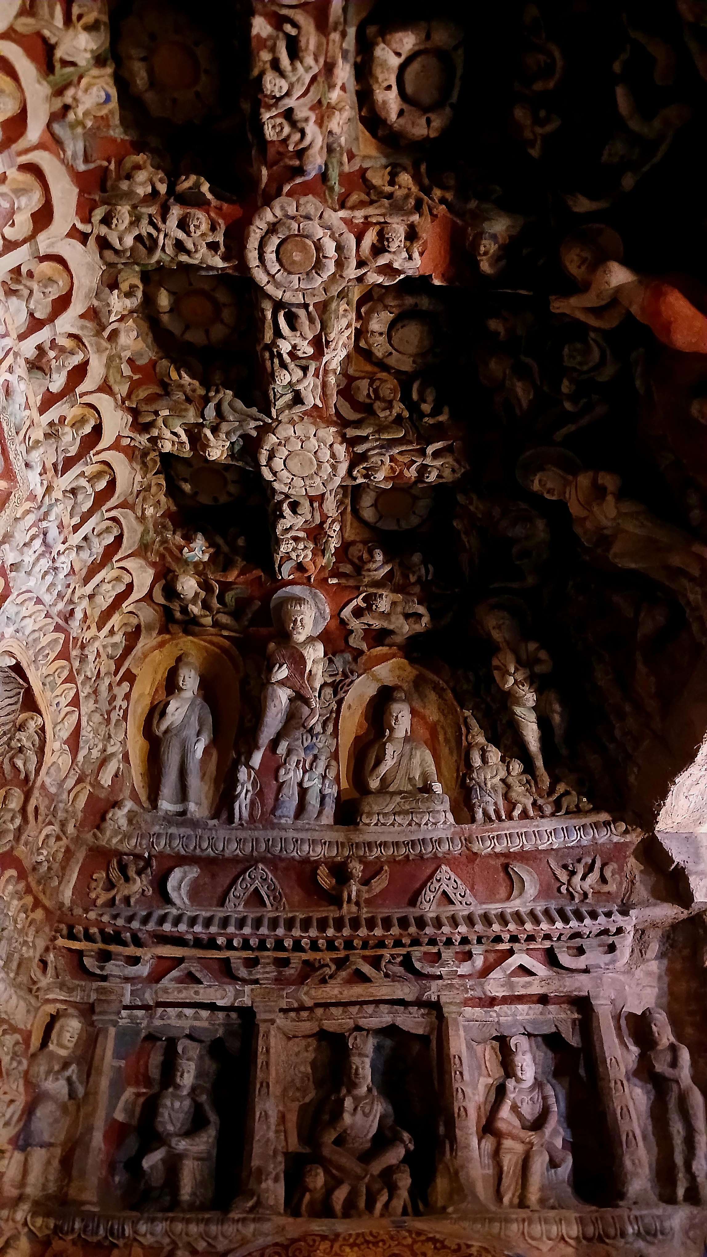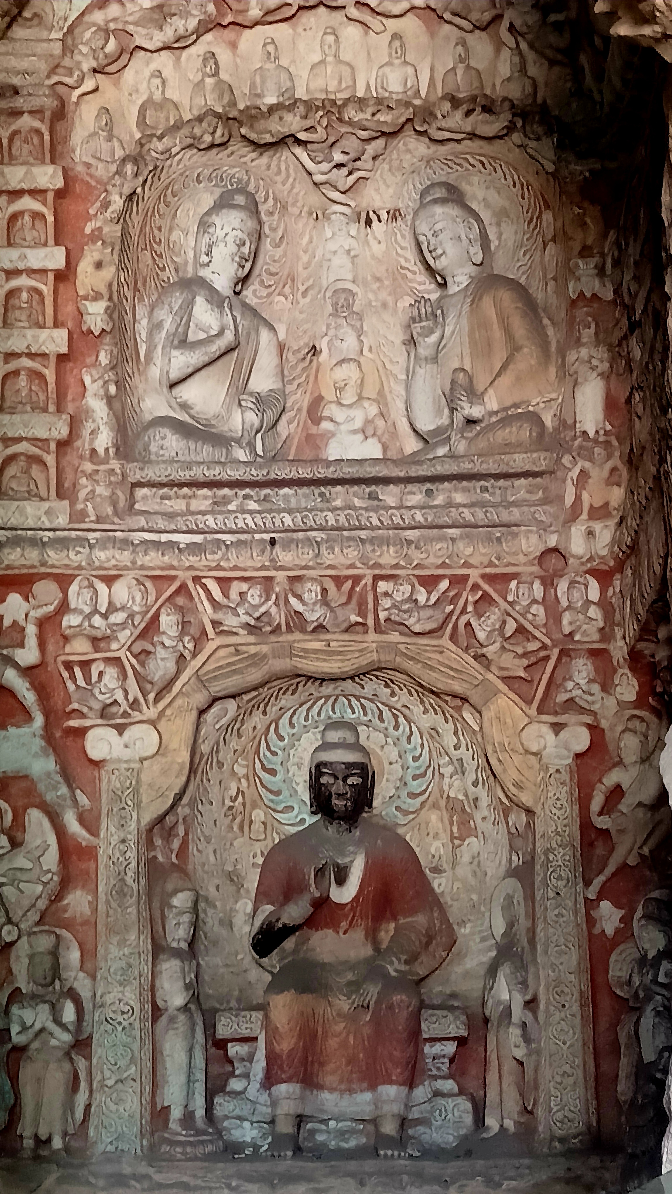 반면 뤄양 룽먼석굴은 정교하고 세련된 조각이 특징이며 중국 불교 석굴 예술의 전반기와 후반기를 잇는 중요한 유산으로 평가받고 있으며 다퉁 윈강석굴은 초기 석굴로서 투박하지만 정감이 가는 매력이 있으며 직선적인 조각과 옷 주름 등의 섬세한 표현이 돋 보인다.