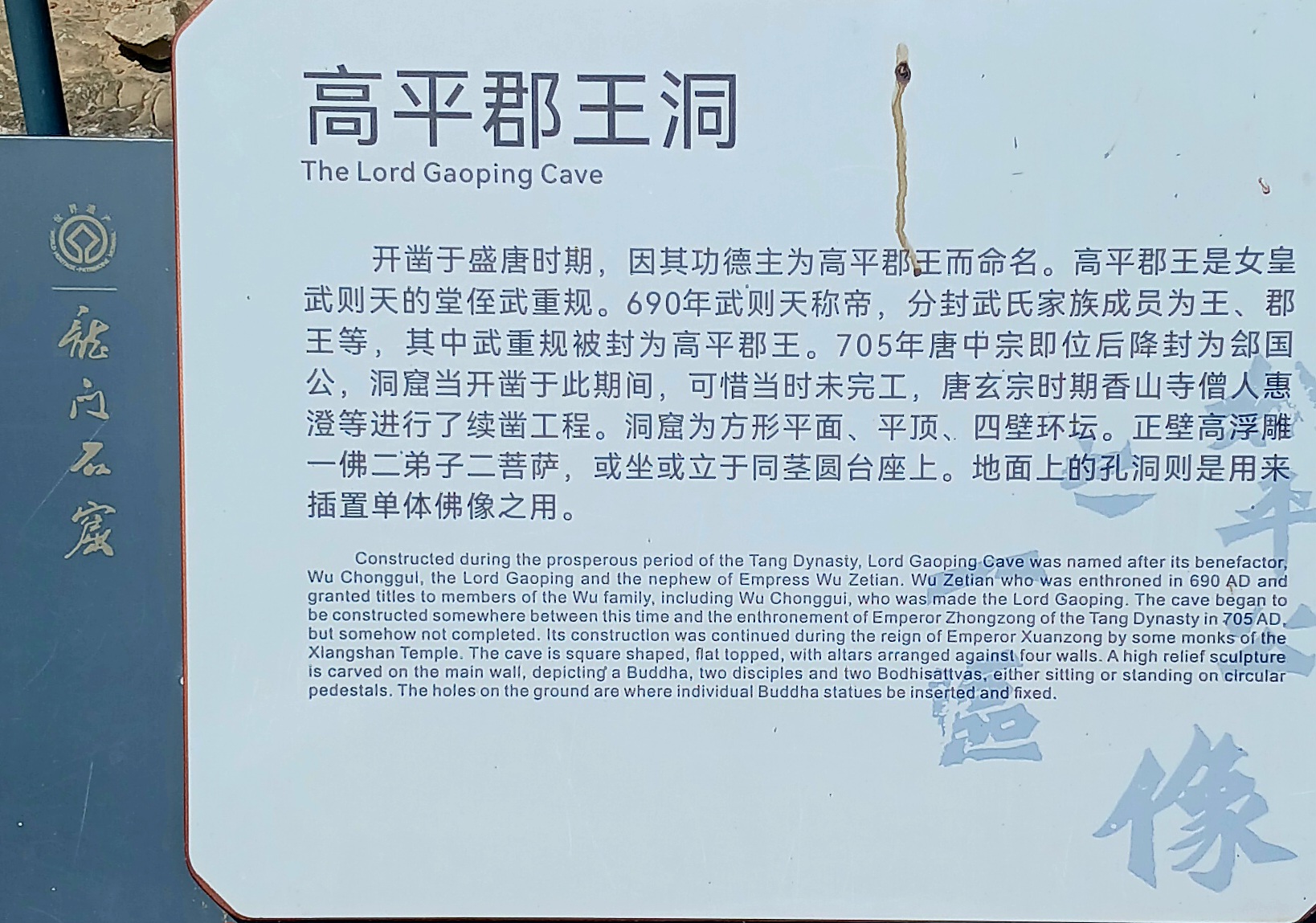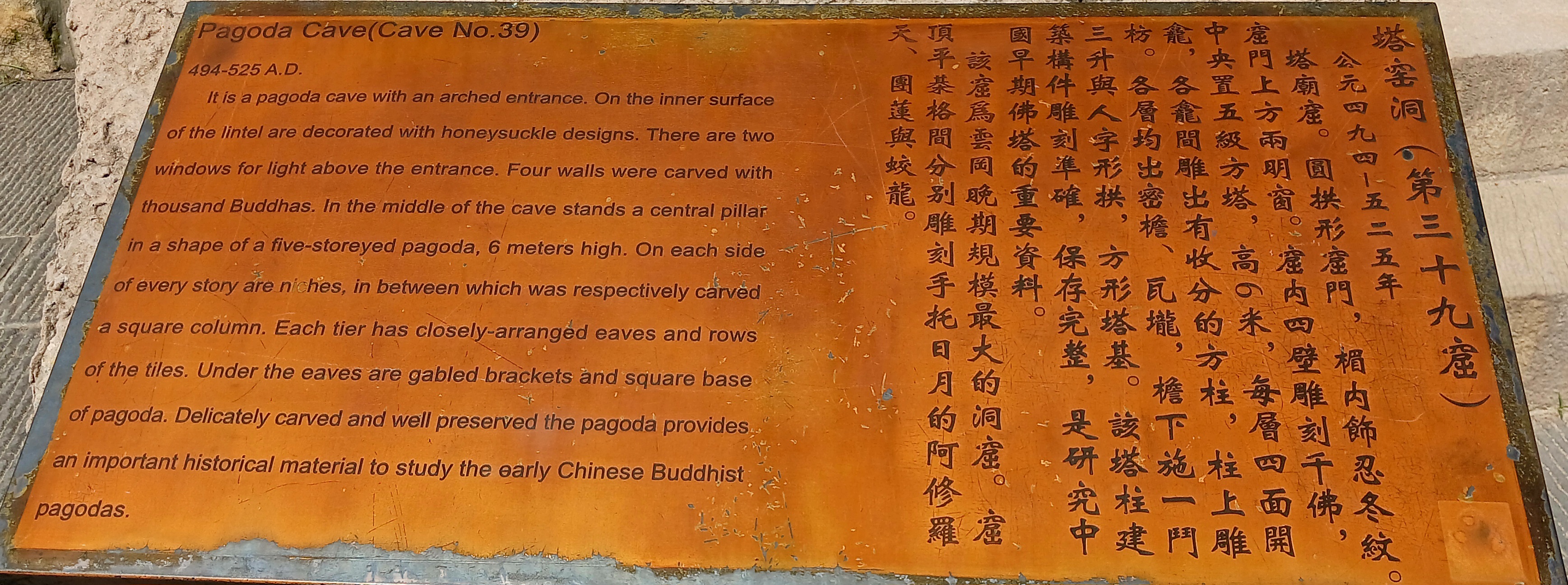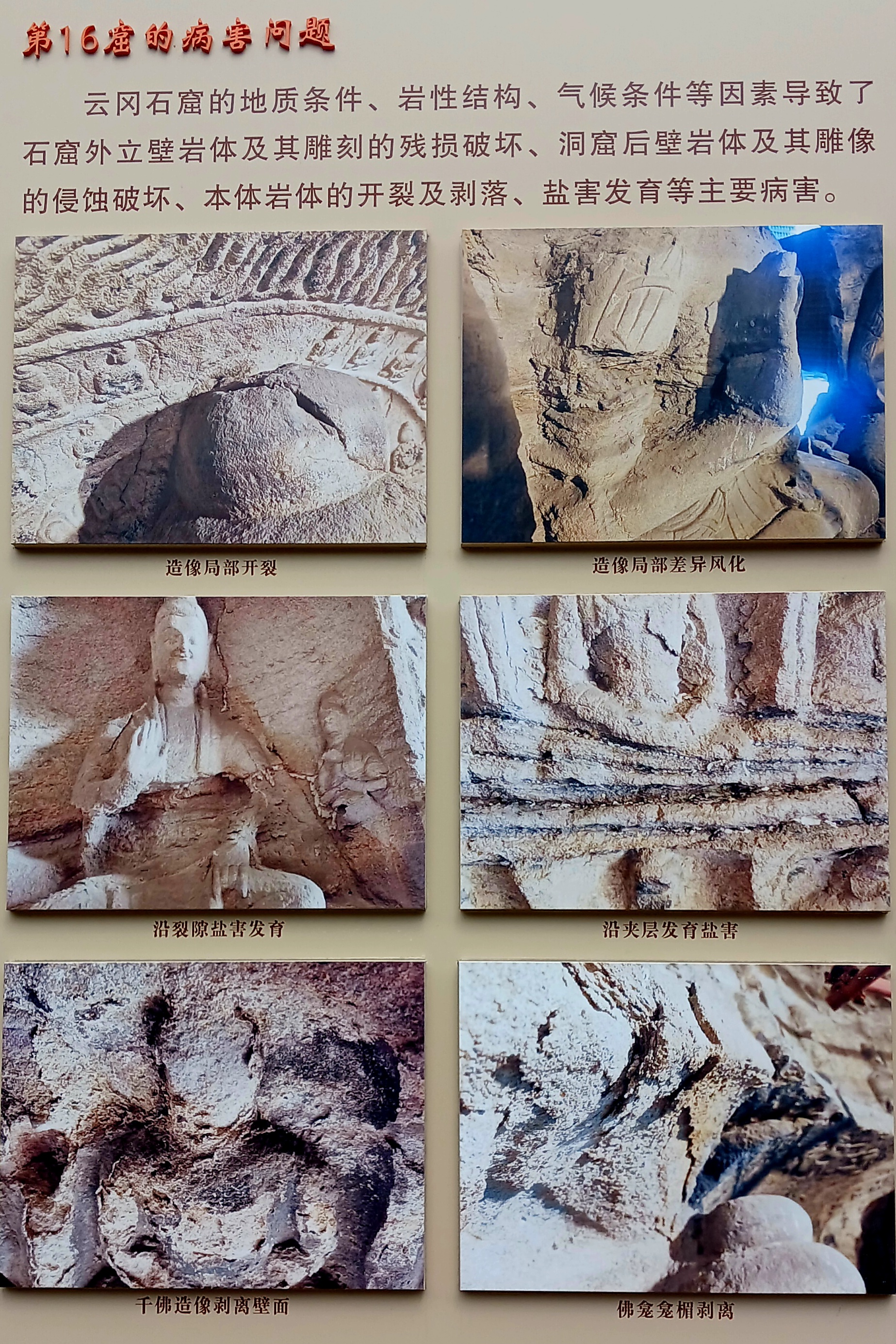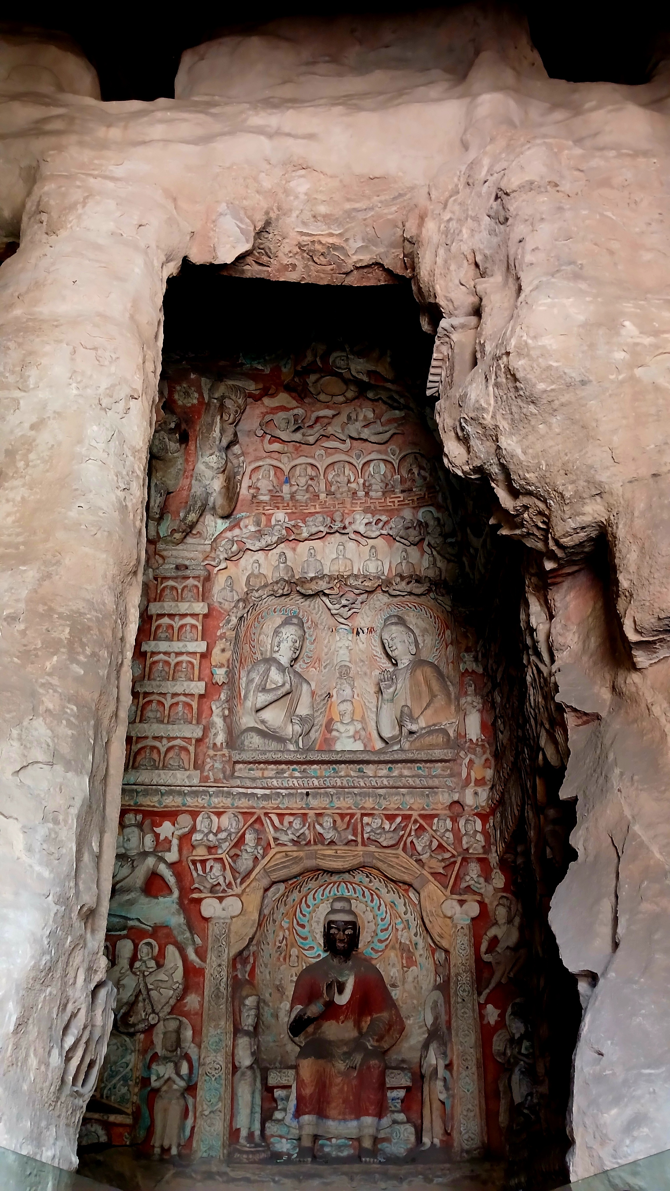 반면 뤄양 룽먼석굴은 정교하고 세련된 조각이 특징이며 중국 불교 석굴 예술의 전반기와 후반기를 잇는 중요한 유산으로 평가받고 있으며 다퉁 윈강석굴은 초기 석굴로서 투박하지만 정감이 가는 매력이 있으며 직선적인 조각과 옷 주름 등의 섬세한 표현이 돋 보인다.