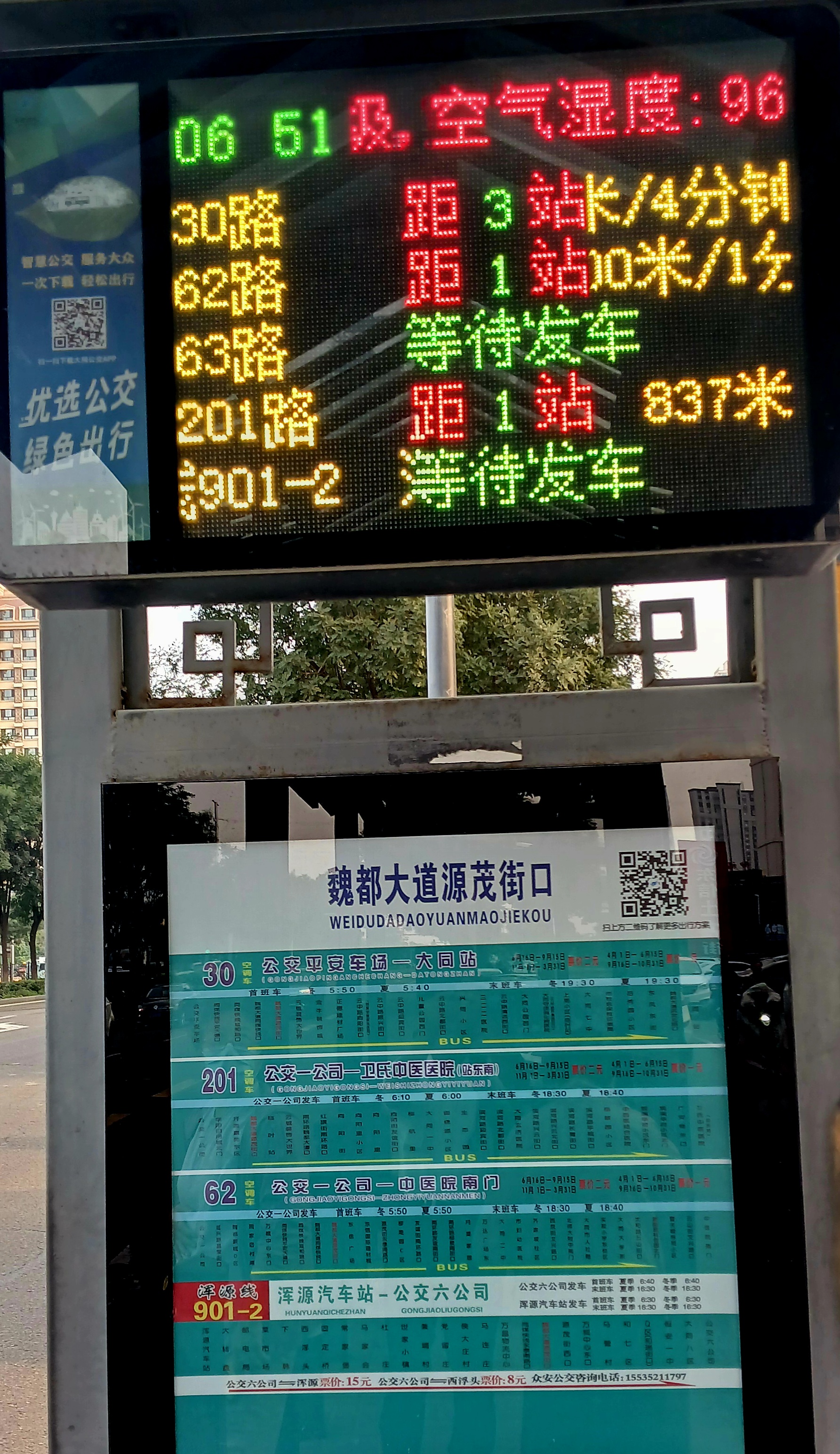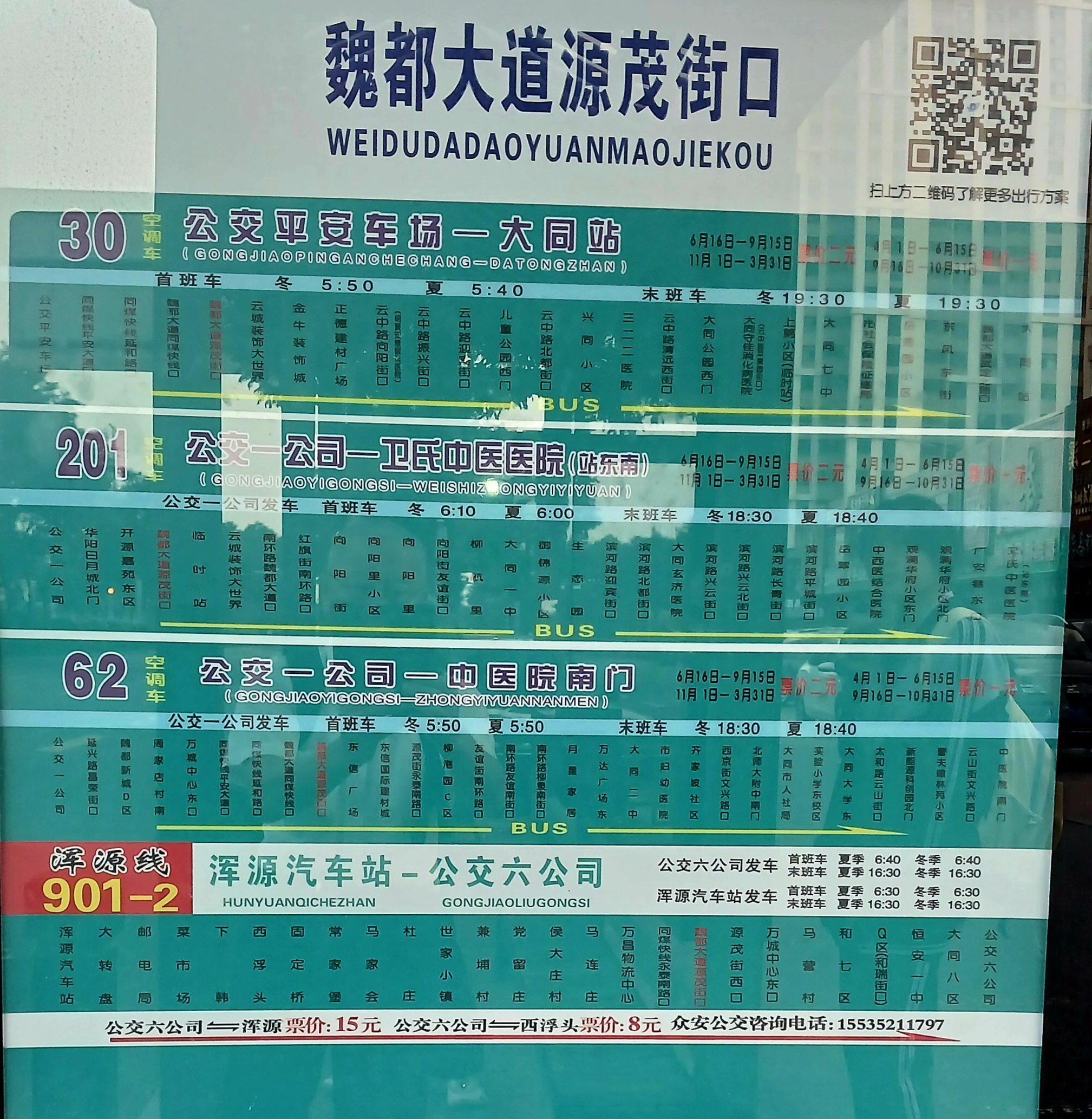 오후 18시 항산여유경구객운점을 출발한 901번 버스가 다퉁역/객운점에 도착하니 20시입니다.