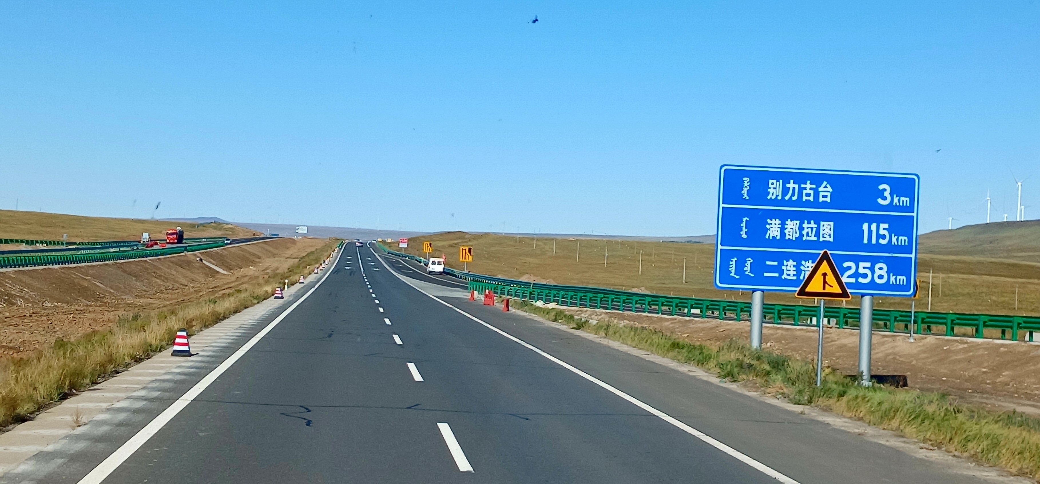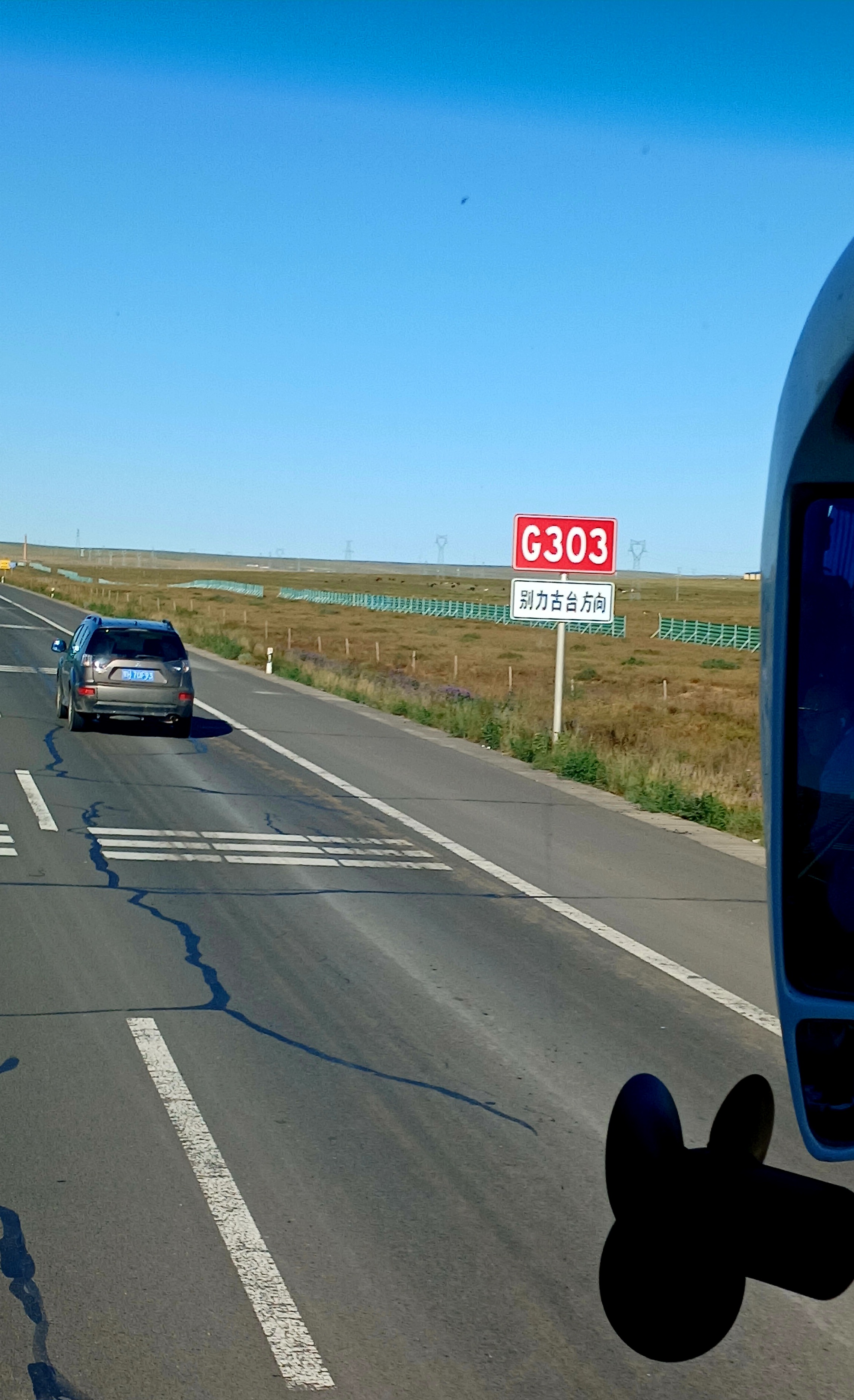 시린하오터 기차점(錫林浩特 汽車站,Xilinhaote Bus Station) 에서 전날 예매해둔 오전 7시40분 얼롄하오터행 버스에 승차하여 도심을 벗어나자 G303 국도로 접어드는데 이 도로는 지린성 지안시(吉林省 集安市)에서 내몽골 자치구 시린하오터시 (内蒙古自治区 锡林浩特市)까지 이어지는 1,263km의 횡단 국도입니다.