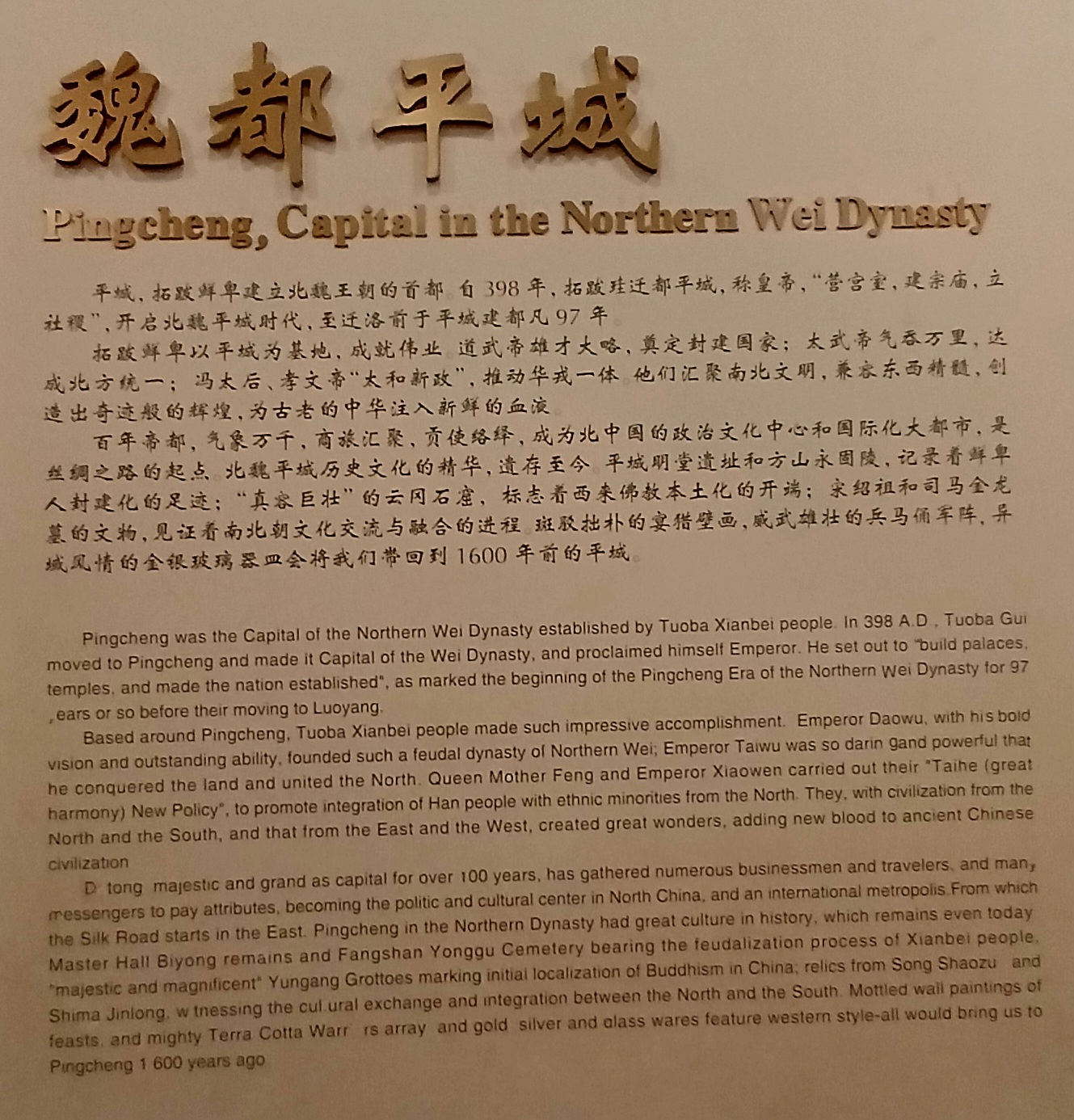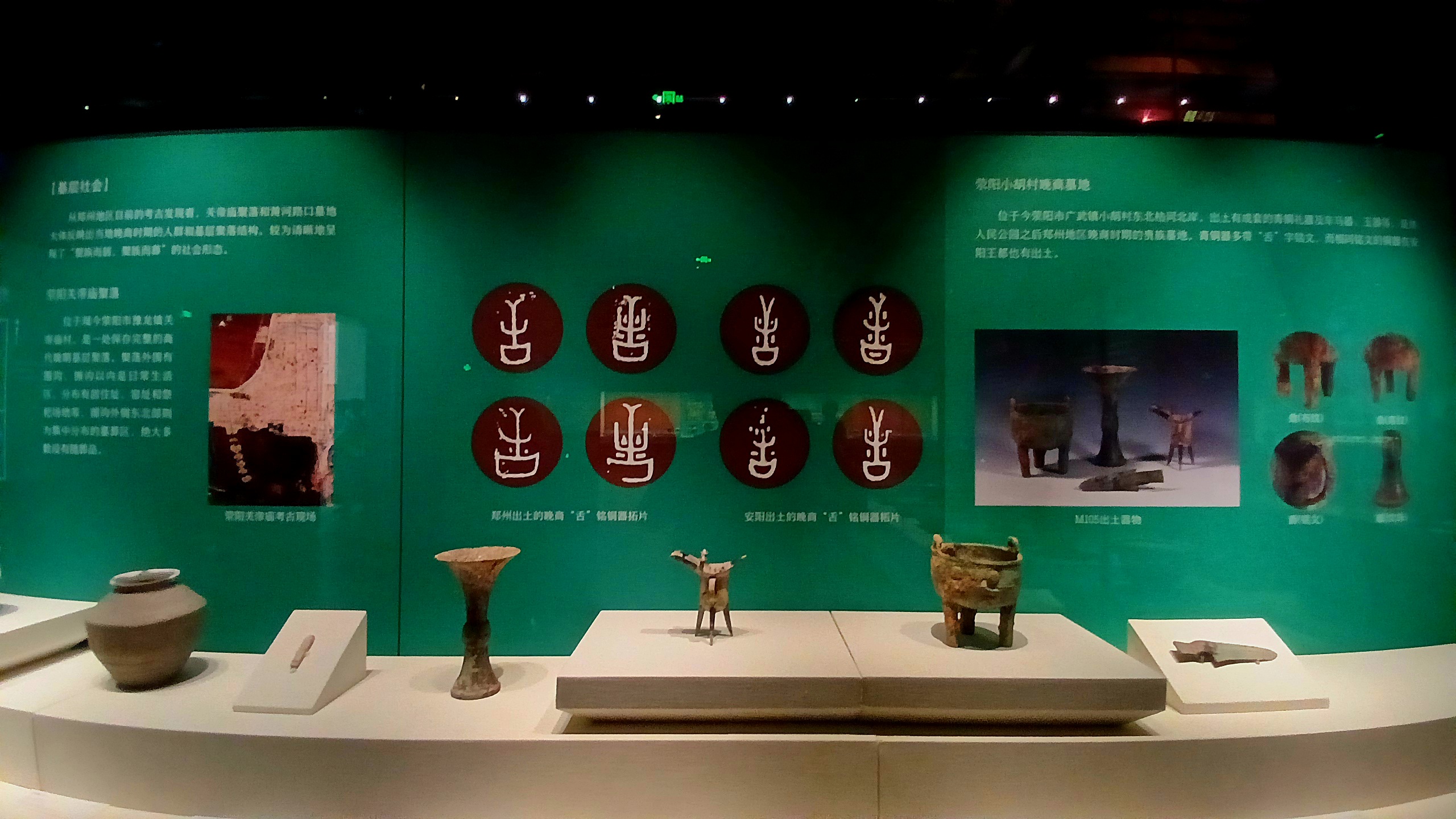 2022년 개관하여 출토된 유물들을 전시,보존하고 있는데 서청(序厅, Preface Hall)에 현조생상(玄鸟 生商),경백지회(景亳之会),상탕입국(商汤立国)등 상나라의 연대기를 동판 환형 부조로 만들어 놓아 보는 사람을 압도시킵니다.