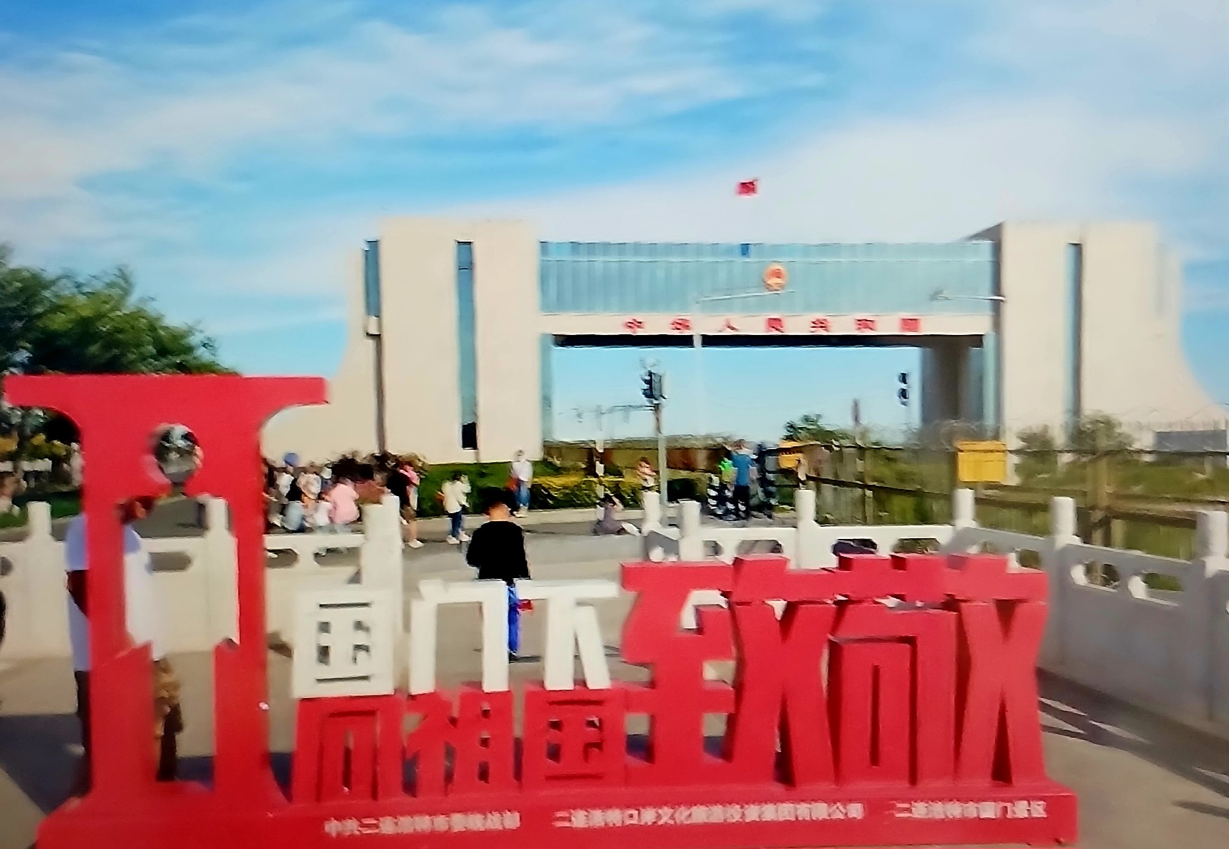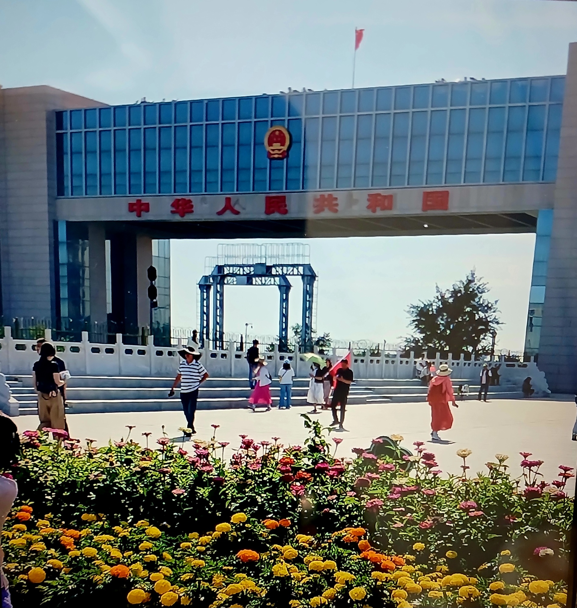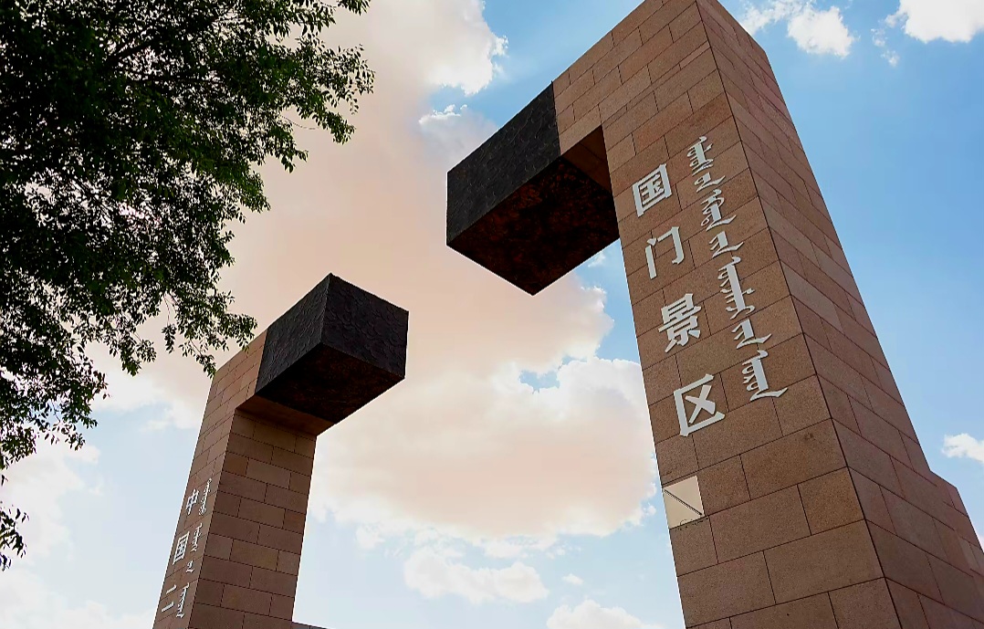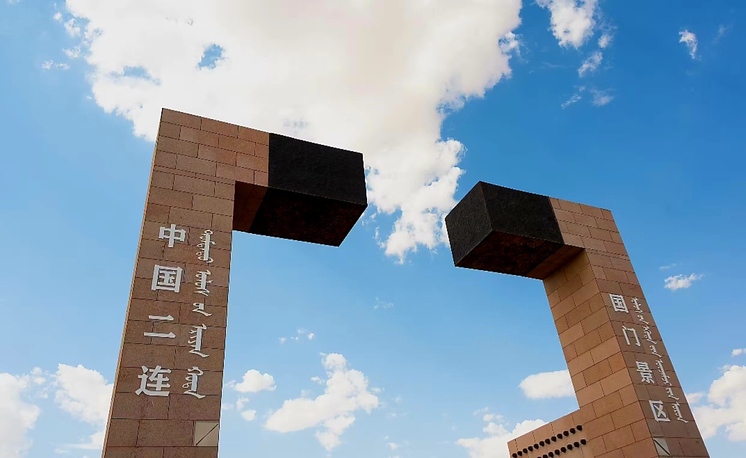 중국의 얼롄하오터와 몽골의 자민우드(Eren-Zamien Ude) 국경에 위치한 국문은 중국의 북문으로 불리며 중국 북부에서 몽골로 향하는 가장 큰 육로 및 철도 통상구로 게이트 꼭대기에 있는 전망대에서는 몽골 자민우드의 국문까지 조망할 수 있다고 하는데 시간이 없어 올라 가보지 못하고 차창관광으로 대신하는데 너무나 아쉽습니다.