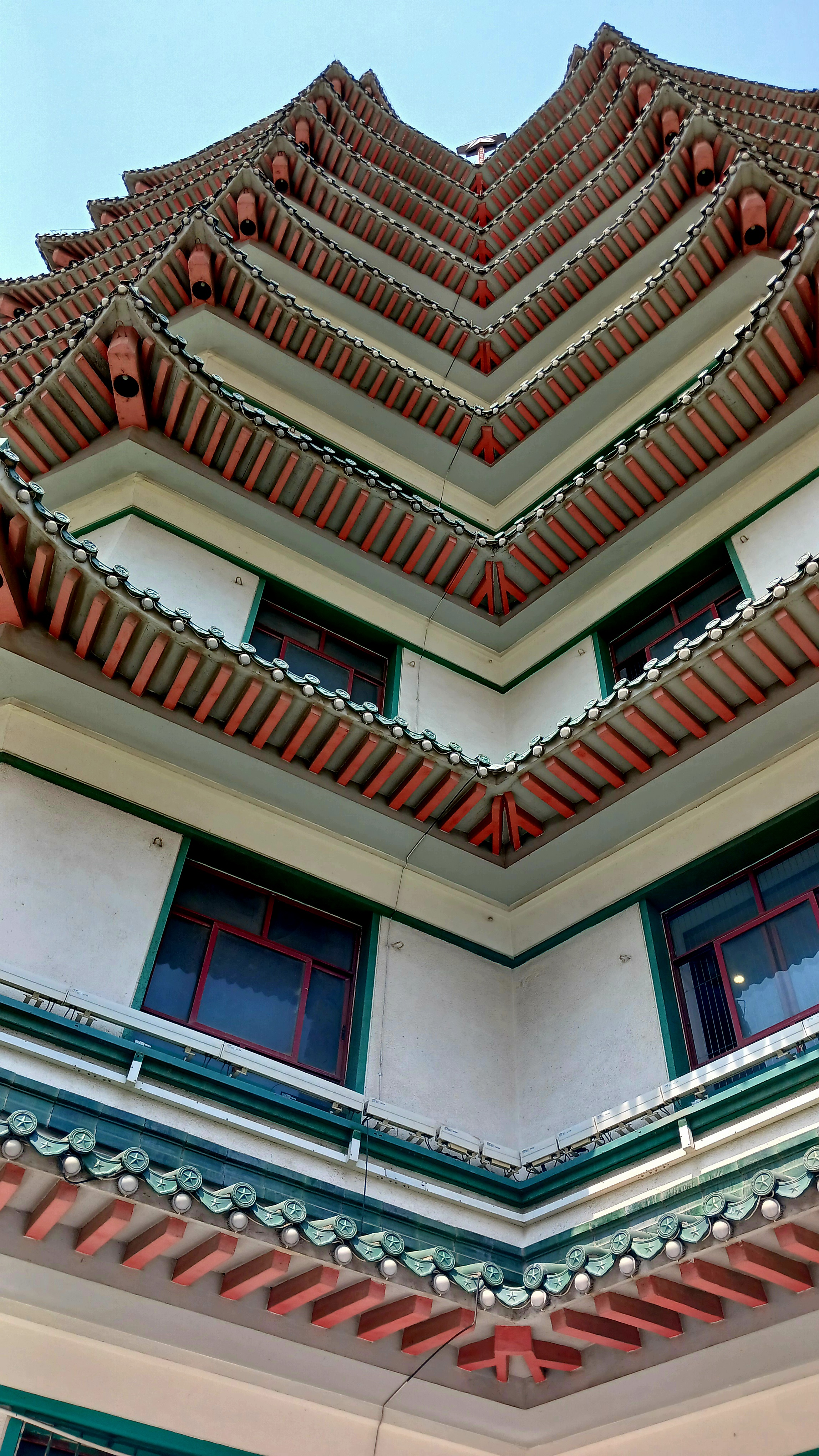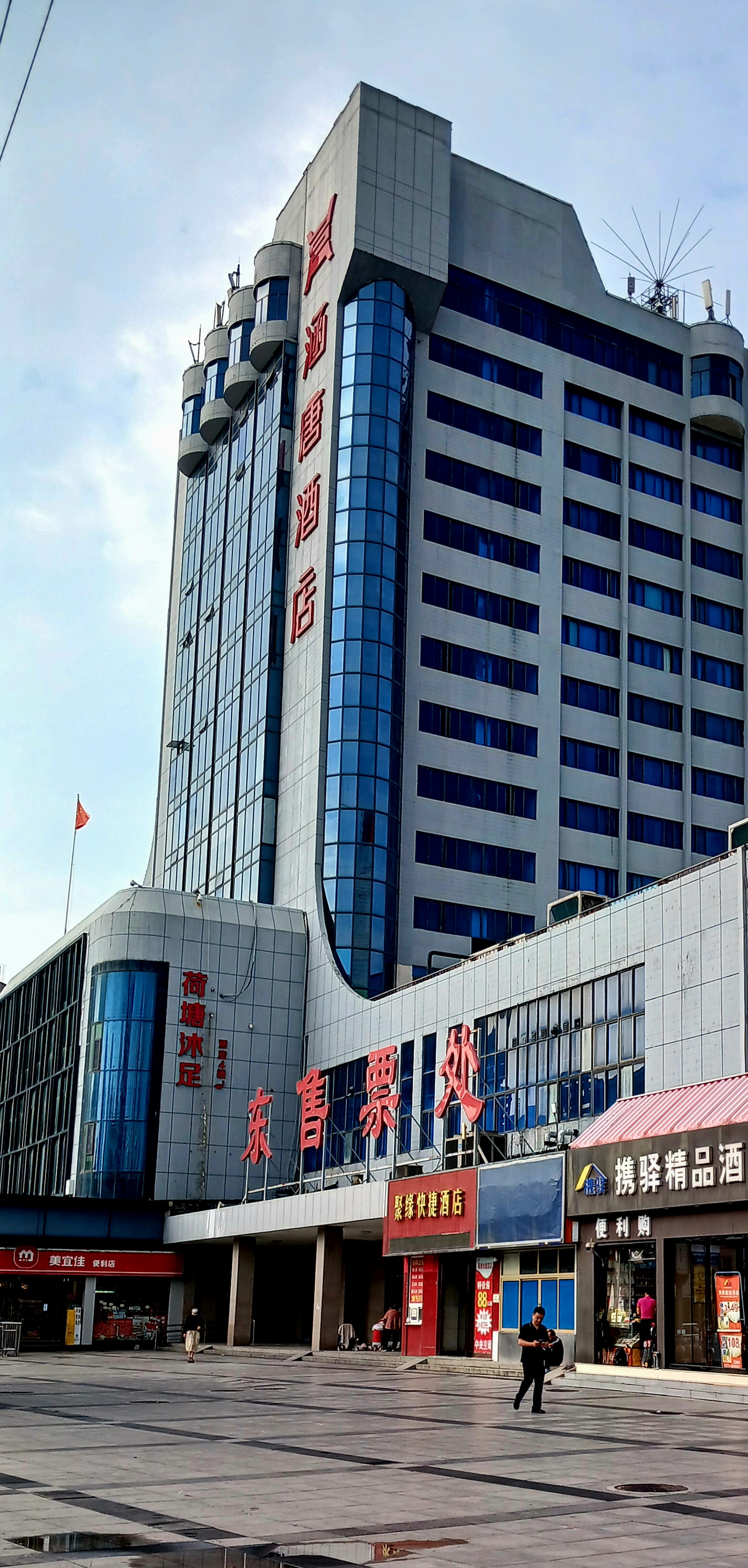 타워의 높이는 63m로 14층에 2개 의 오각형 탑이 합쳐진 이 탑의 모양은 중국 건축 양식으로 1971년 완공되었으며 탑 꼭대기에는 다섯 개의 붉은 별이 있고 그 아래에는 2.7m 높이의 시계가 있습니다. 시계는 매 시간 중국 혁명 노래인 동방홍을 연주합니다.