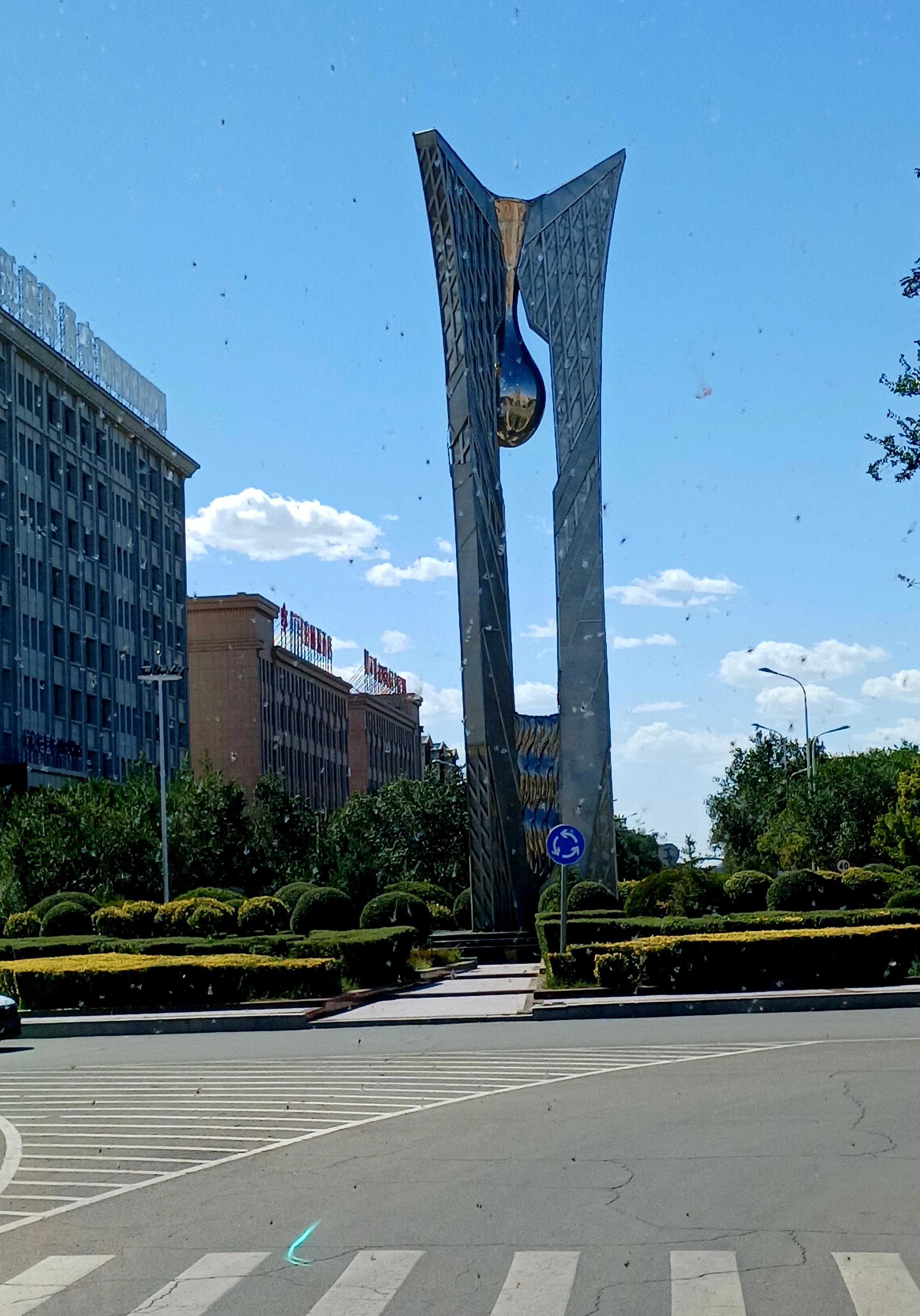 얼롄하오터는 중국-몽골 국경을 따라 광활한 고비 사막에 위치한 현급 도시로 이 조형물은 도시의 현대적인 발전과 함께 건조한 사막 환경에서의 물의 중요성을 상징화한 예술 작품이라고 합니다.