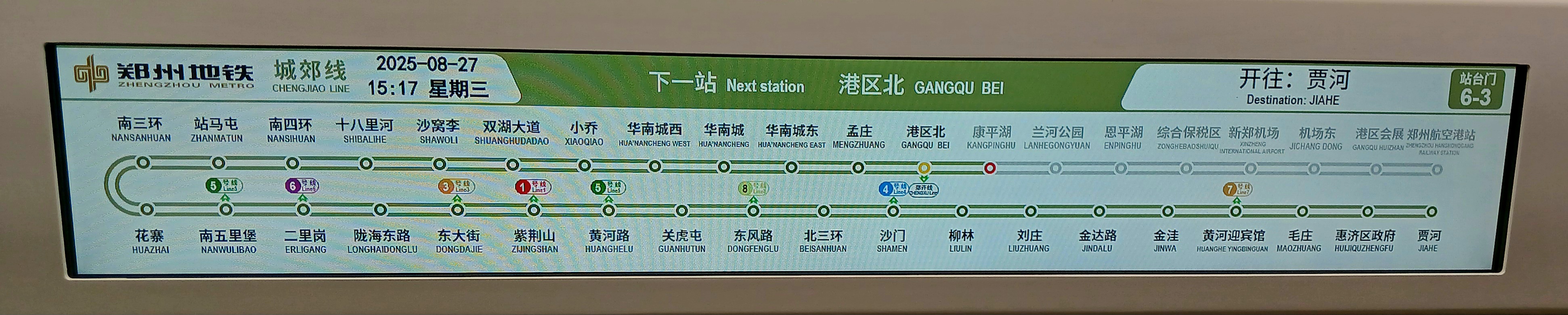 허난박물관 앞 공교차 정류장에서 B18로 공교차를 타고 2호선 관후툰역에서 내려 지하철을 타고 이리강역에서 6호선으로 환승하니 바로 봉황대남역에 도착하고 도보로 투숙중인 쉰샹비지팅셰 호텔로 복귀하여 내일을 준비합니다.지하철 요금은 3위안입니다.