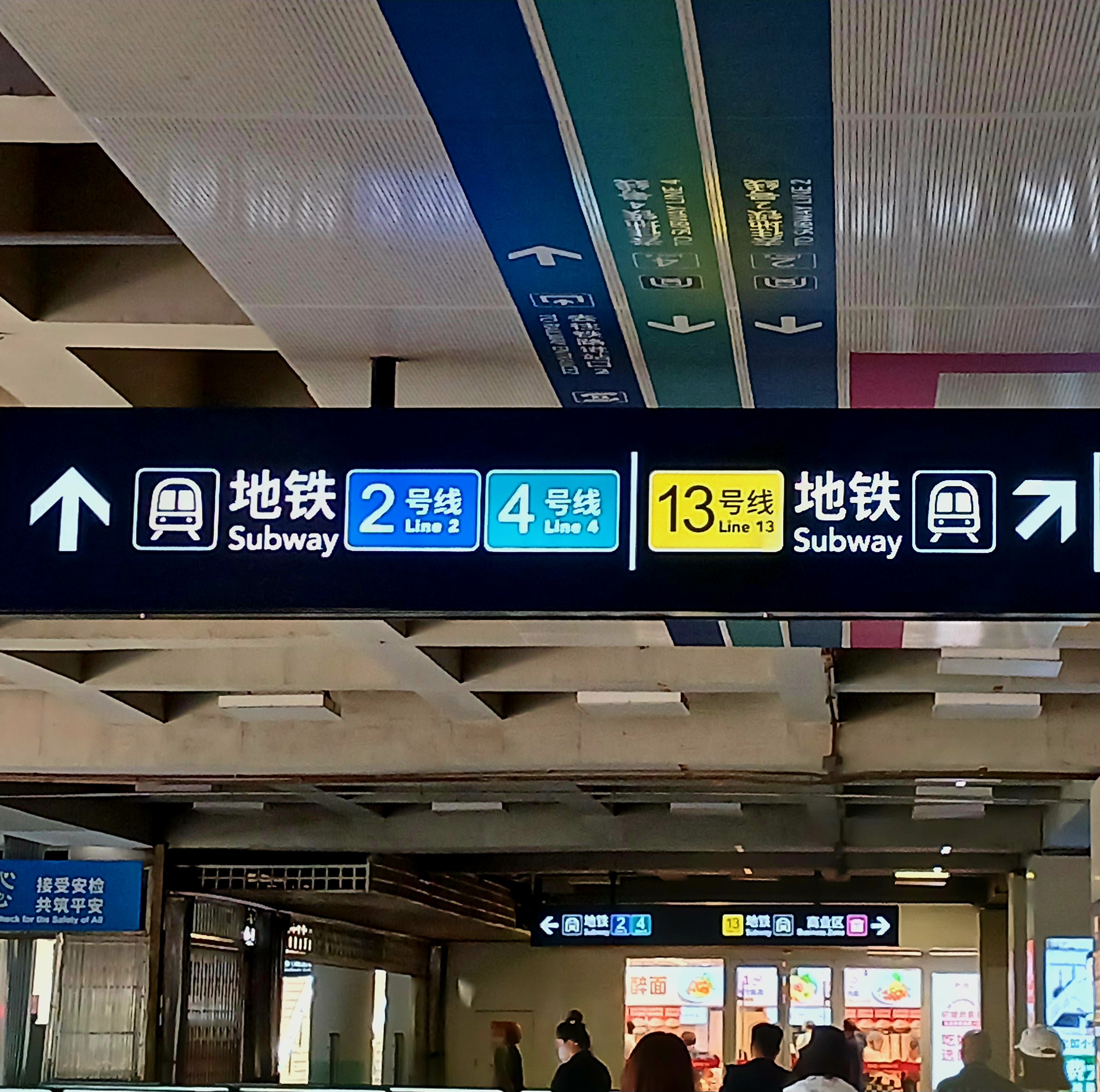 2호선 지하철을 타고 동직문역 (东直门,Dongzhimen)에서 환승하니 서우두국제공항으로 가는 13호선과 연결됩니다.