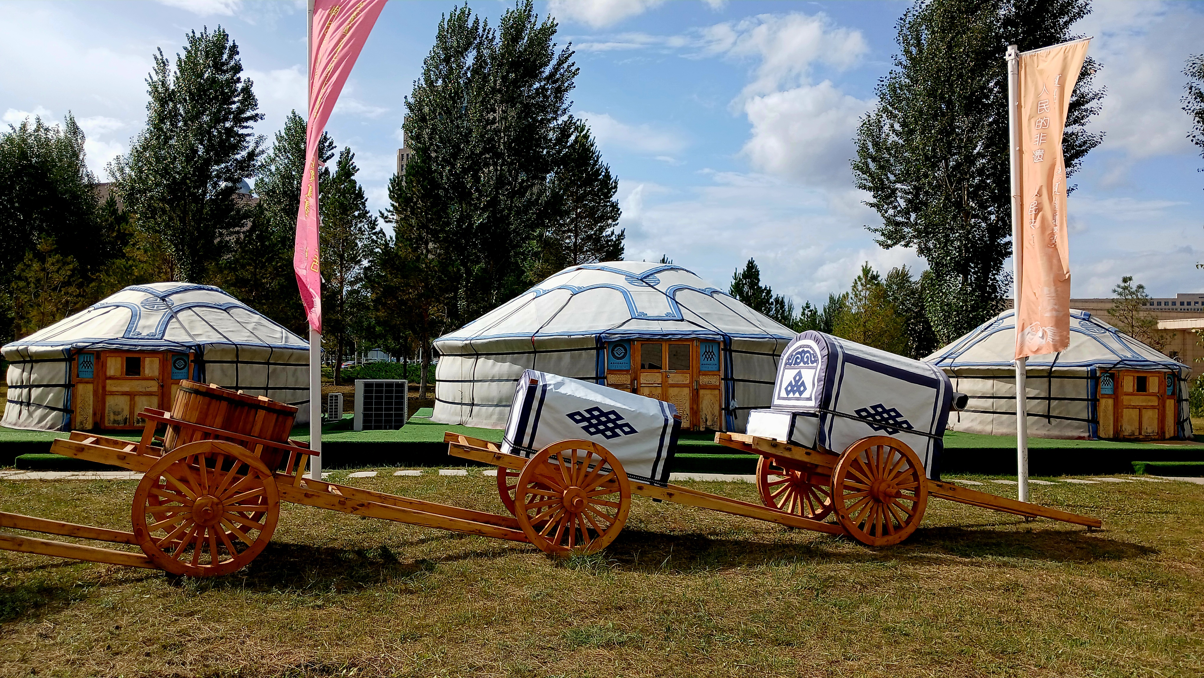 화려한 옷을 입고 음식을 차리고 장신구와 물자를 팔기 위해 화려한 유르트가 설치되는데
