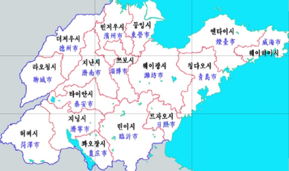 웨이하이,옌타이,칭따오,지난시가 잘 알려져 있으며 타이안시(泰安 市)에 태산(泰山)이 자리잡고 있다.