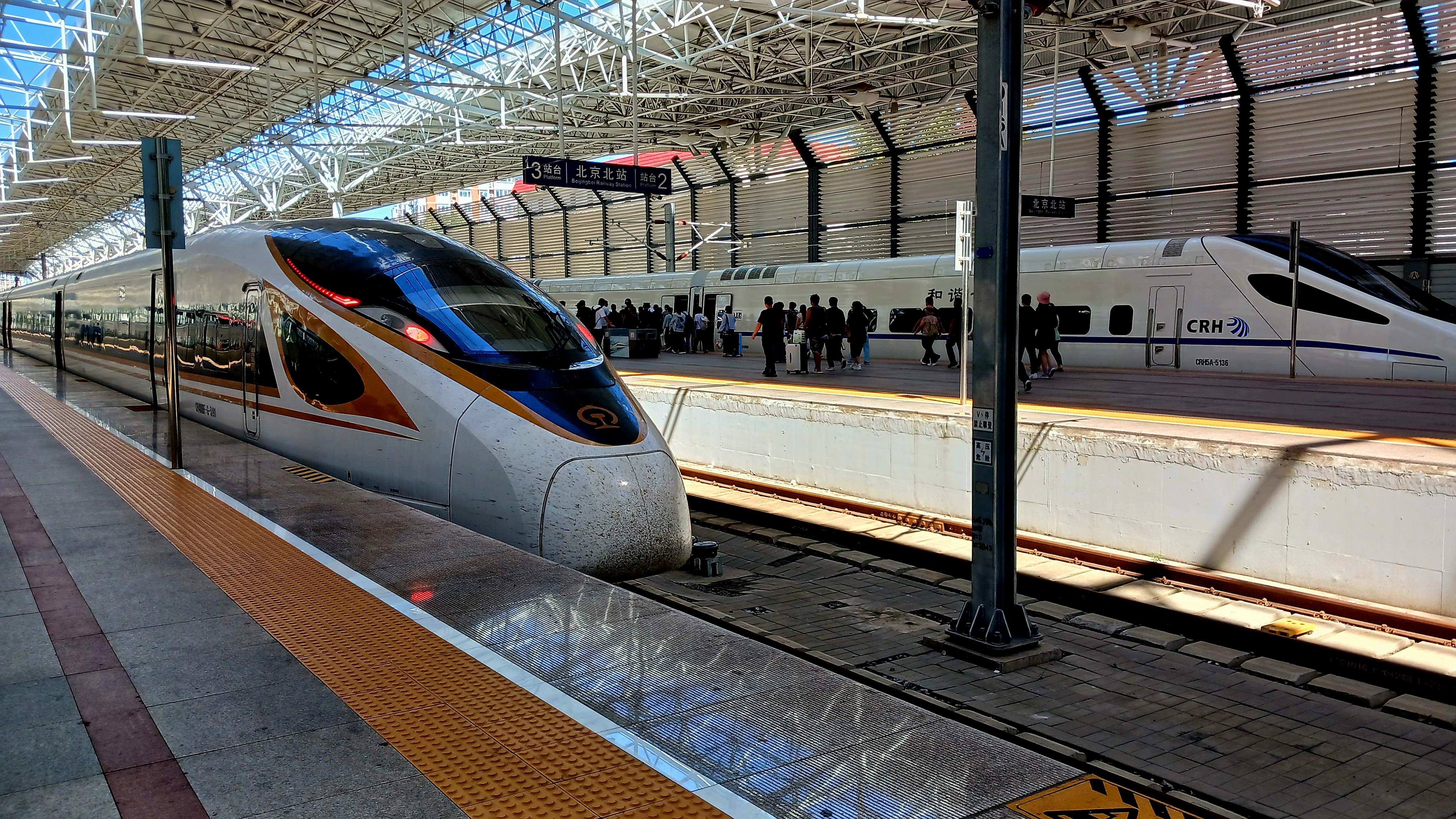우란차부점에서 컵라면으로 아침 식사를 간단하게 하고 오전10시 10분 베이징북점(北京北站)행 G2482편으로 환승하니 장자커우 를 경유하여 350km를 내달려 오전11시40분 베이징북점에 도착합니다.중국의 수도 베이징의 고속철도역이라 규모도 크고 플랫폼이나 대합실은 인산인해를 이룹니다.