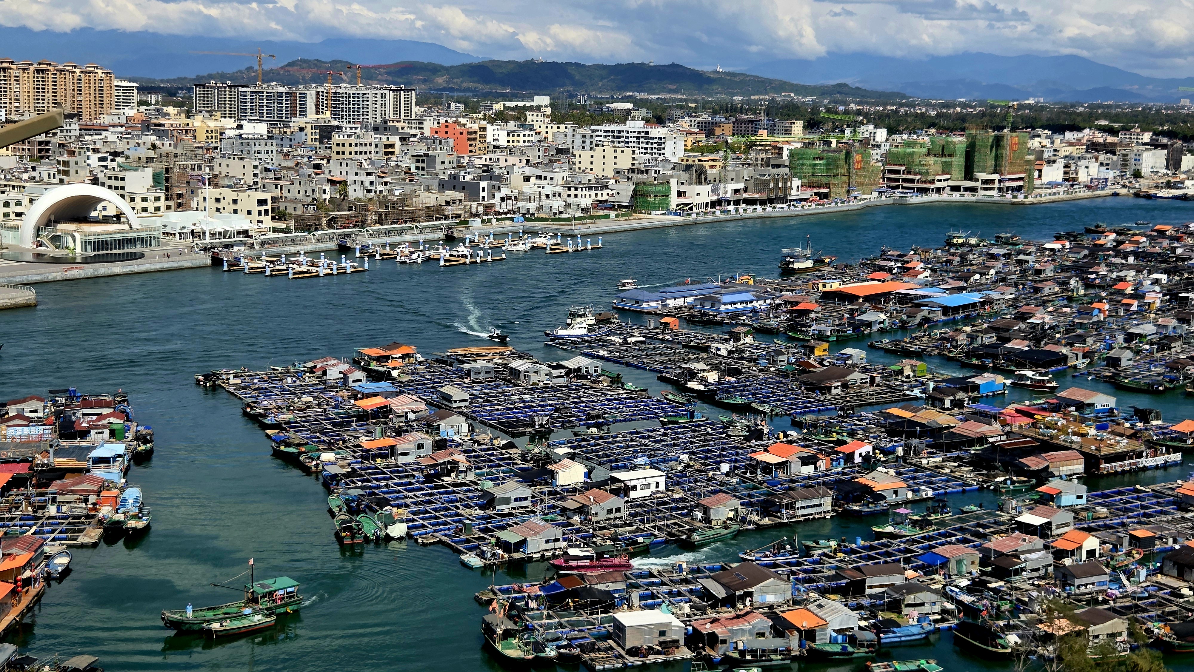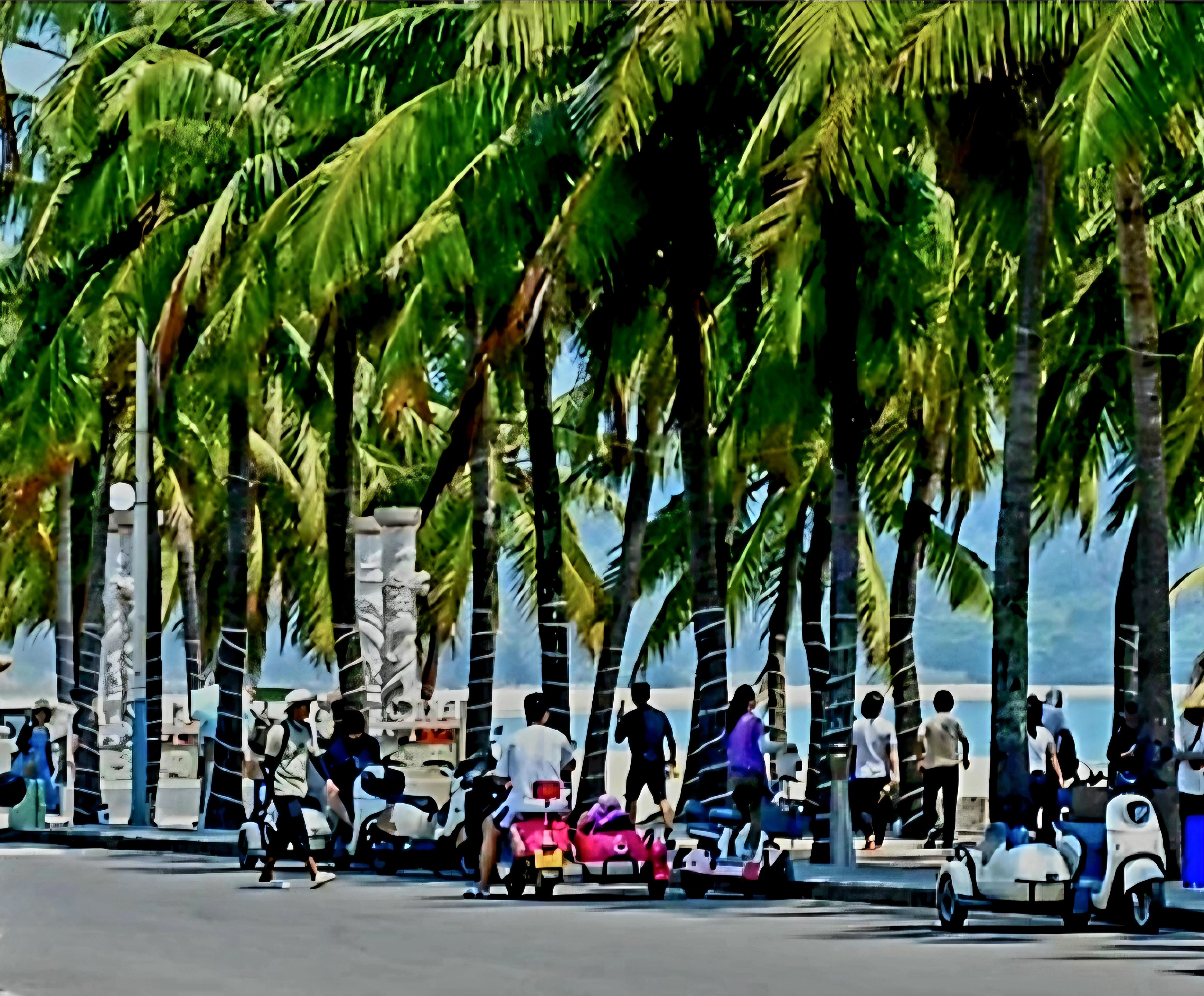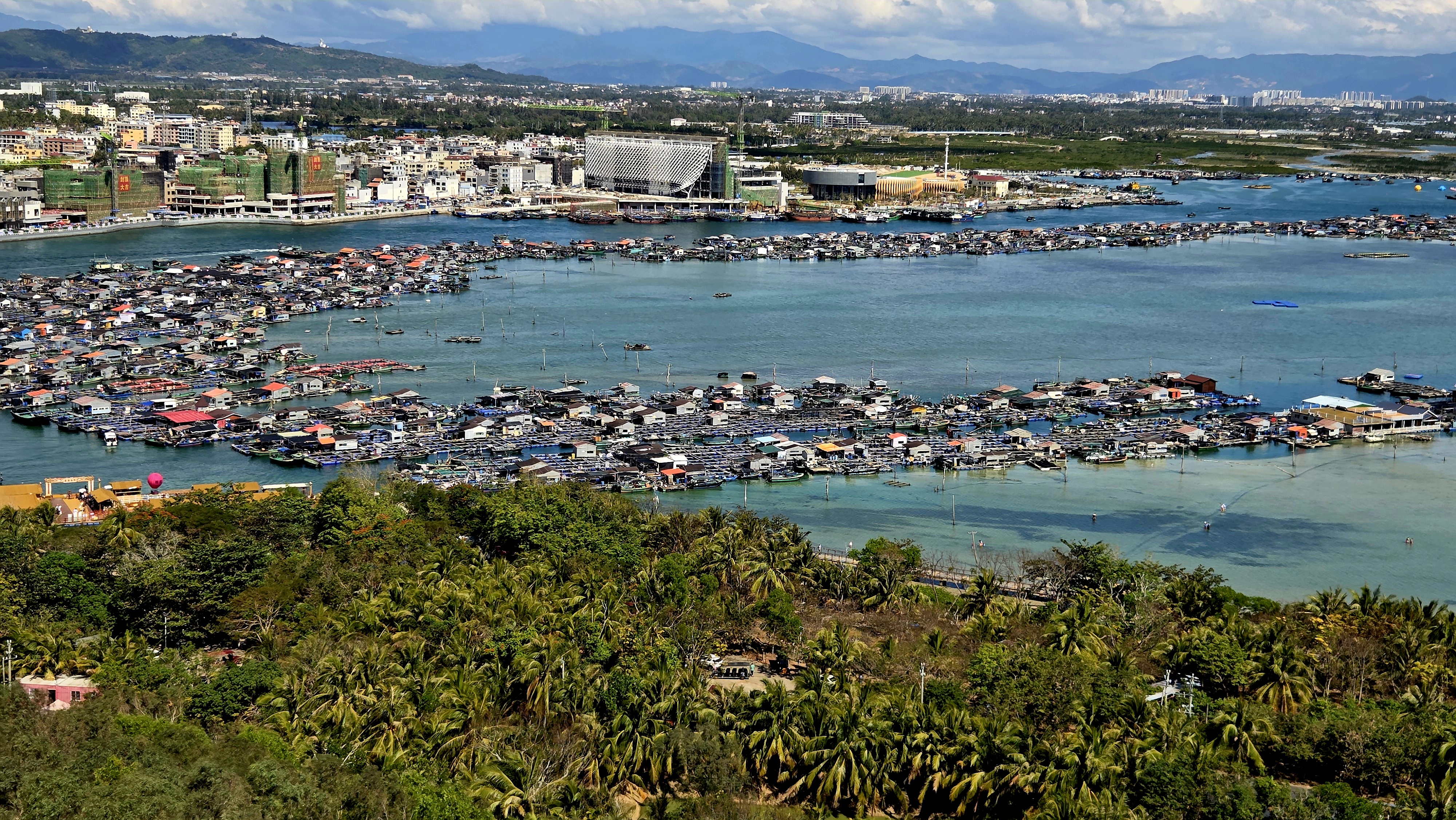 이곳에서는 푸른 바다와 하늘이 펼쳐진 칭저우 해협을 바라보며 공작새 꼬리처럼 솟아오른 하이커우의 고층 빌딩들을 감상할 수 있습니다.