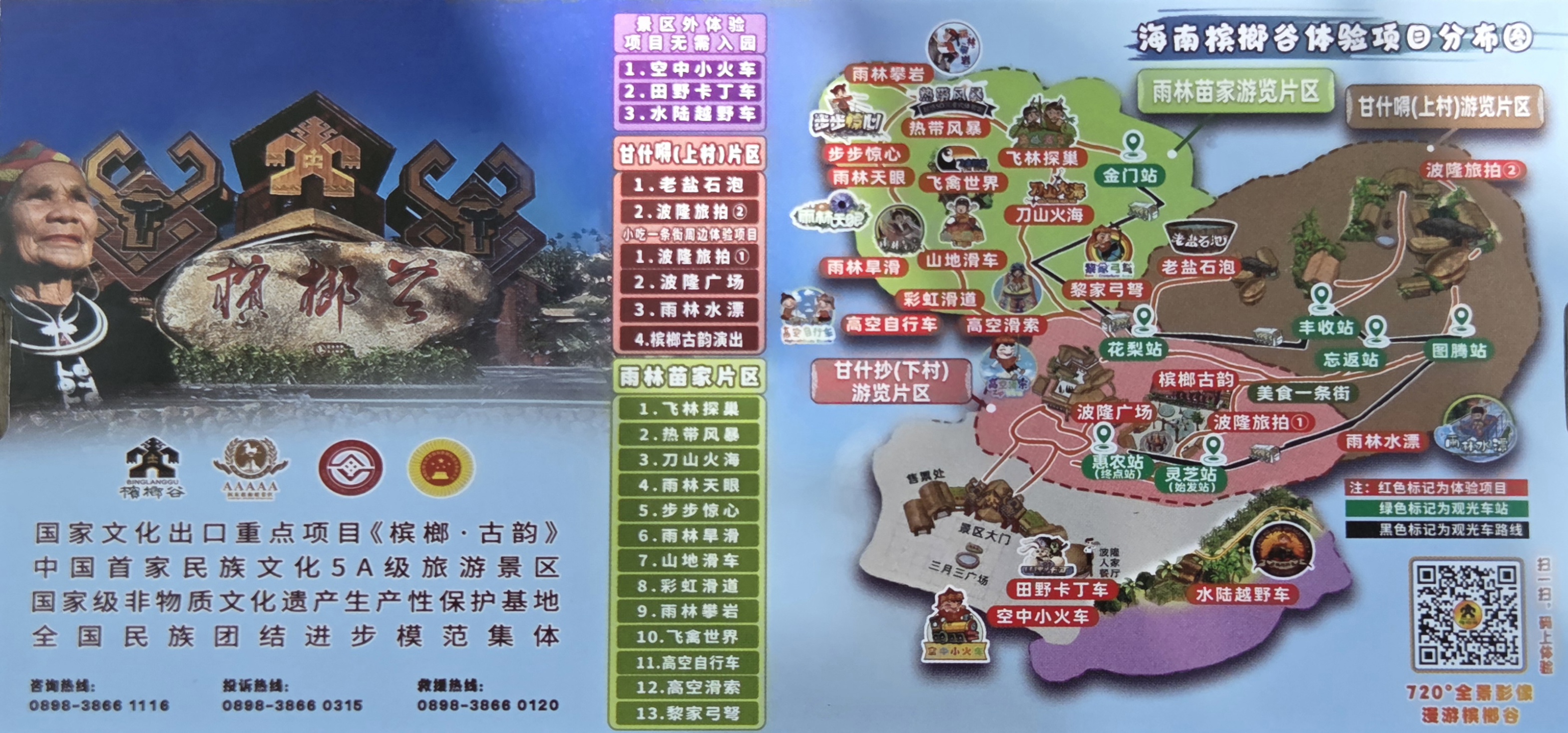 1. 볼롱 여행사진촬영① (波隆旅拍①) 2. 볼롱광장(波隆广场) 3. 우림 래프팅(雨林水漂) 4. 빈랑 고운 공연(槟榔古韵 演出)