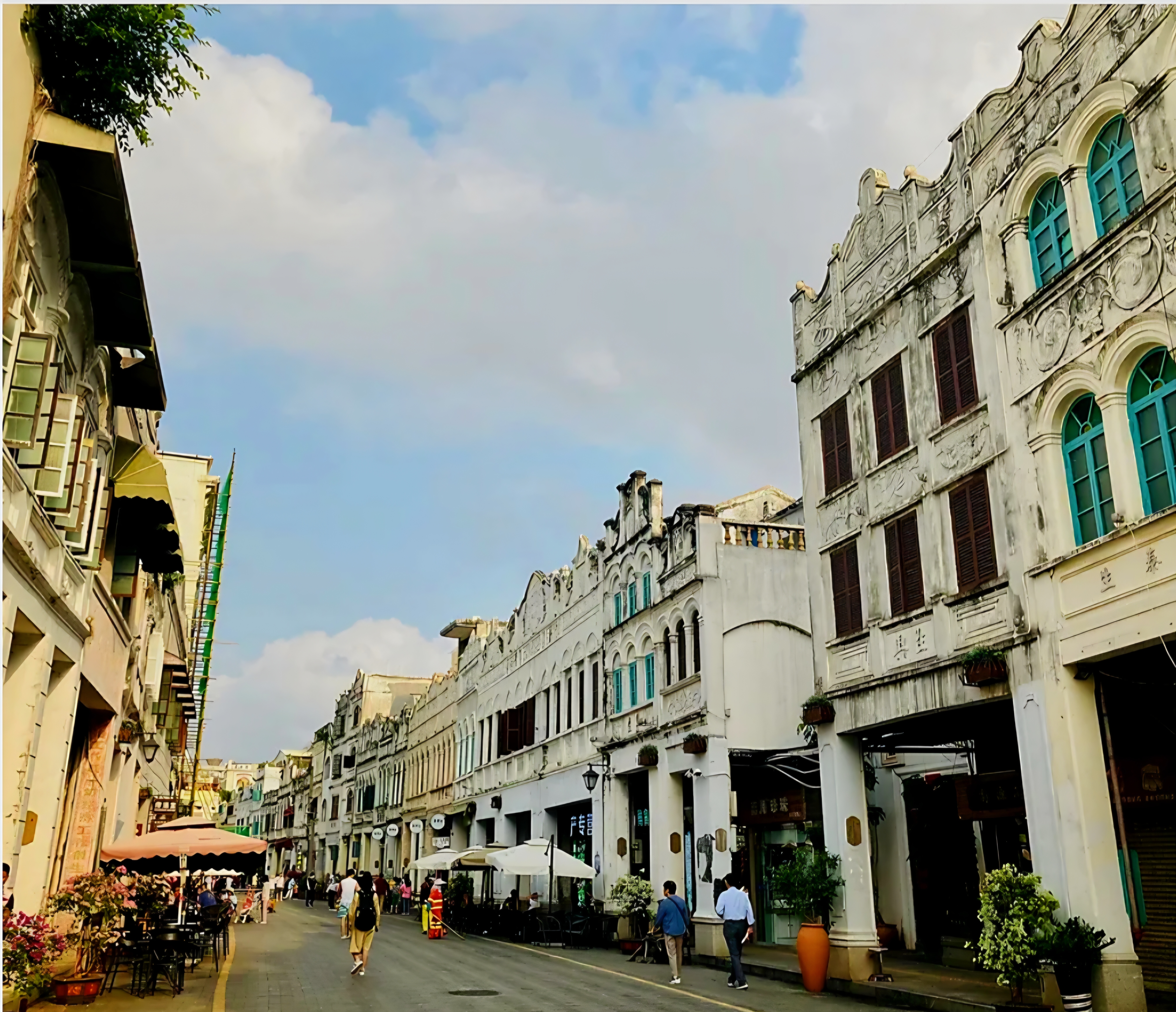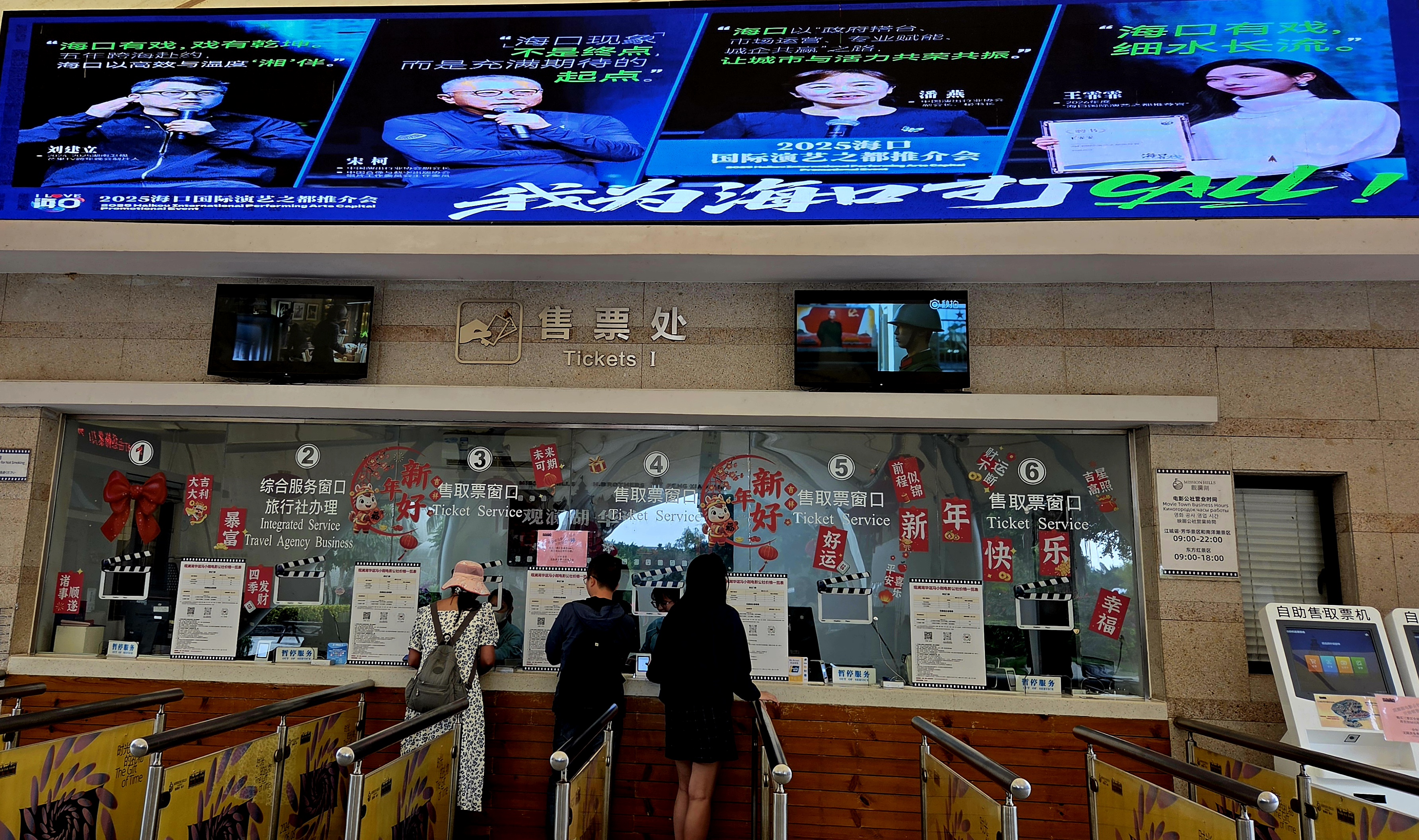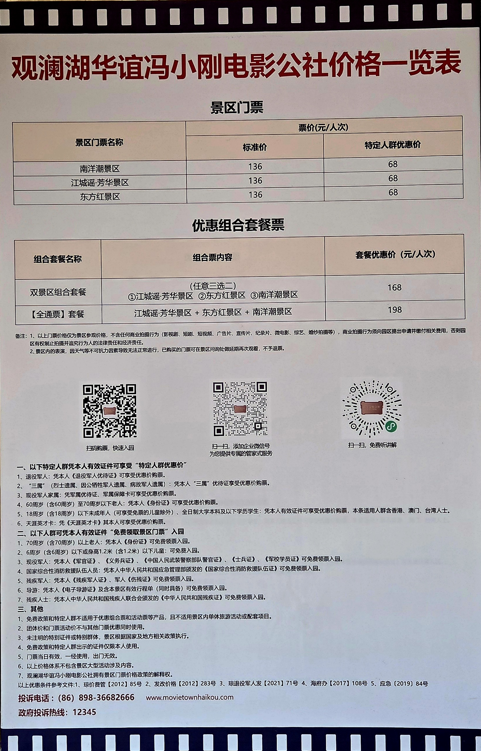 무비타운은 미션힐스그룹, 화이 형제, 유명 감독 펑샤오강이 공동 개발한 영화 테마 파크로 둥팡홍경구(东方红景区)는 1950년대~1970년대까지의 옛 베이징의 종루와 고루가 실물 크기로 재현되어 있고 소련식 건물과 후퉁 정원이 특징이며 난양차오경구(南洋潮 景区)는 300m가 넘는 길이에 70여 채의 동남아(말레이 싱가포르) 양식 아케이드 건물이 늘어서 있어 20세기 초 상업 항구의 문화를 엿볼 수 있고 장청야오. 팡화경구(江城谣.芳华景区)는 영화 *<청춘>*의 장면들을 완벽하게 재현해 놓았습니다. 공연예술단 연습실, 수영장, 농구 코트등을 보면 마치 1970년대로 시간 여행을 온 듯한 기분을 느끼게 만듭니다.