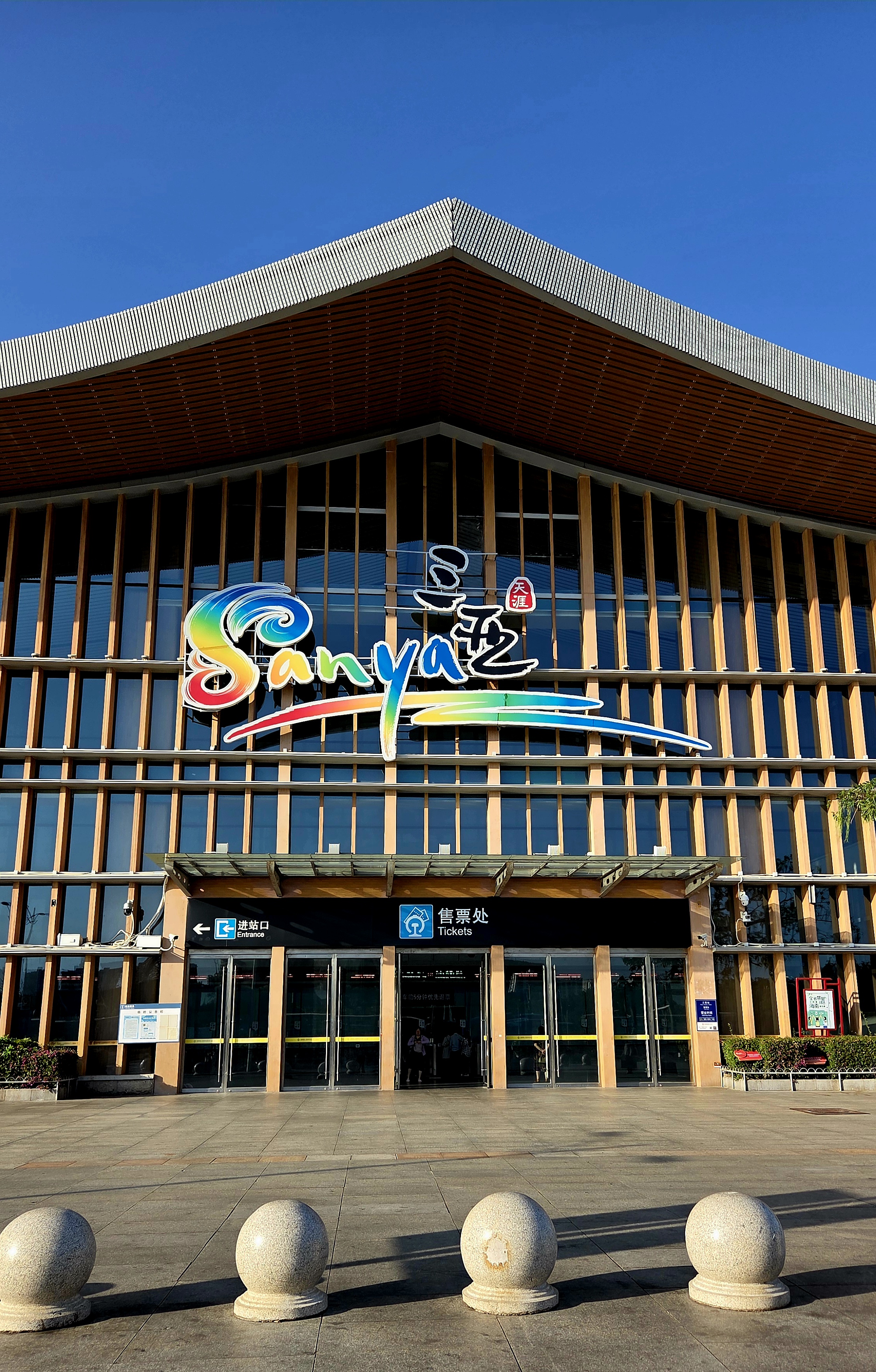 투숙 중인 맹그로브 트리 리조트 월드 싼야 베이 코코넛 타워 호텔☆☆☆☆☆(三亞灣紅樹林度假村椰子塔飯店, Coconut Tower Hotel, Sanya Bay Mangrove Resort) 무랭루주 레스토랑(Moulin Rouge, 红磨坊餐厅)에서 오전 6시 30분 서둘러 아침 식사를 하고 호텔 앞 해항학원(海航学院) 버스 정류장에서 210路 공교차를 타니 5분 후 싼 야화차점(三亚 火车站)에 도착합니다.